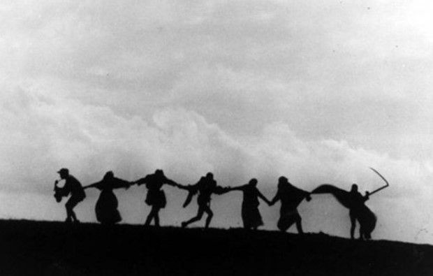 Στη φώτο, η σκηνή του ''χορού του θανάτου'' στην εμβληματική ταινία του 1957 του Ίγκμαρ Μπέργκμαν ''Εβδομη Σφραγίδα'', που αναφέρεται στην πάνωλη του 14ου αιώνα.