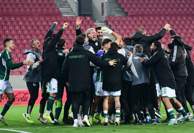 Στη φώτο, προχθές παναθηναϊκοί πανηγυρίζουν στο Καραϊσκάκη, οι παίκτες του Κούγια με κατεβασμένο κεφάλι τράβηξαν αμέσως στα αποδυτήρια.