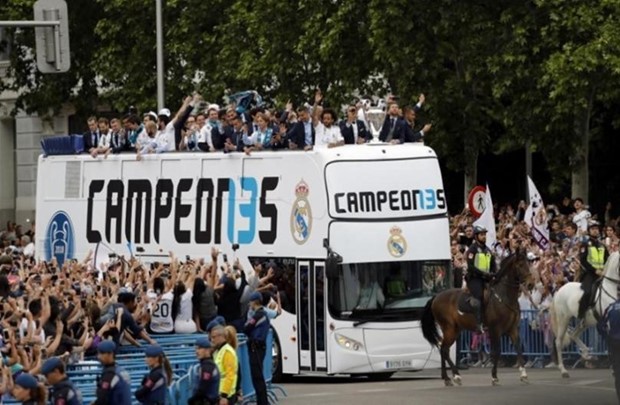 Μισό εκατομμύριο άνθρωποι, οπαδοί της Ρεάλ, το πανηγύρισαν, του έδωσαν και κατάλαβε, το 15ο κύπελλο Ευρώπης. Το καλό, ε, το champions league, πήρε πάλι η βασιλίσσα η Ρεάλ. Πεντακόσιες χιλιάδες άνθρωποι στους δρόμους να χαιρετίσουν, να υποδεχθούν τους νικητές; Μάλιστα, ο κόσμος δεν χορταίνει. Ο κόσμος είναι αχόρταγος.