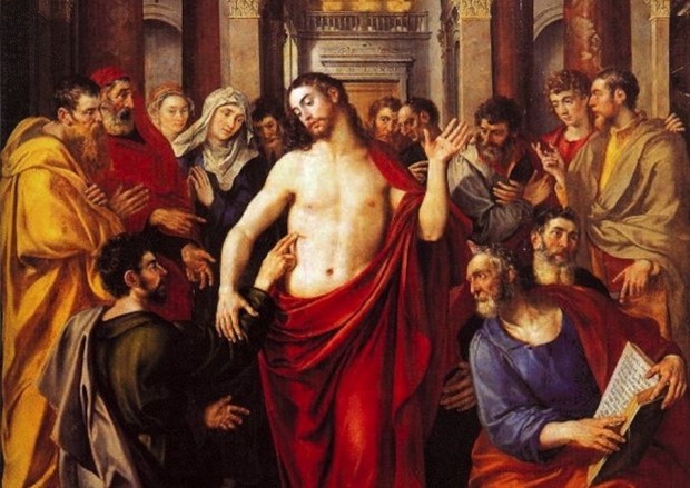 Είδε ο Θωμάς, ακούμπησε και με τα δάκτυλα του τα τραύματα στο κορμί του Χριστού, και τότε πίστεψε ότι πράγματι αναστήθηκε ο αρχηγός.